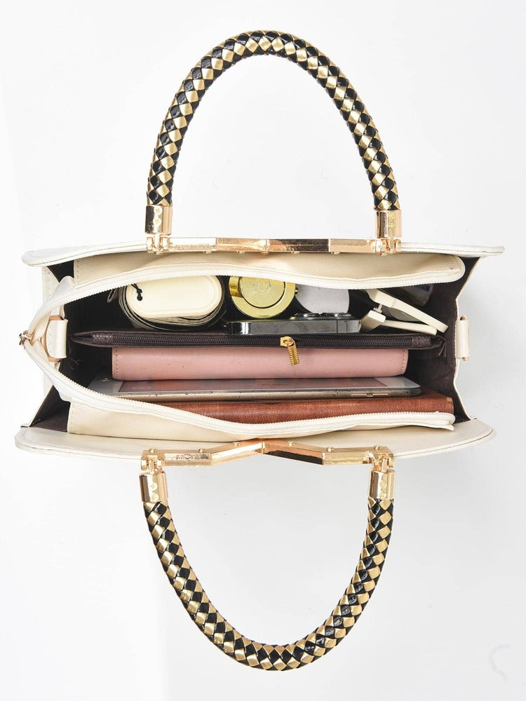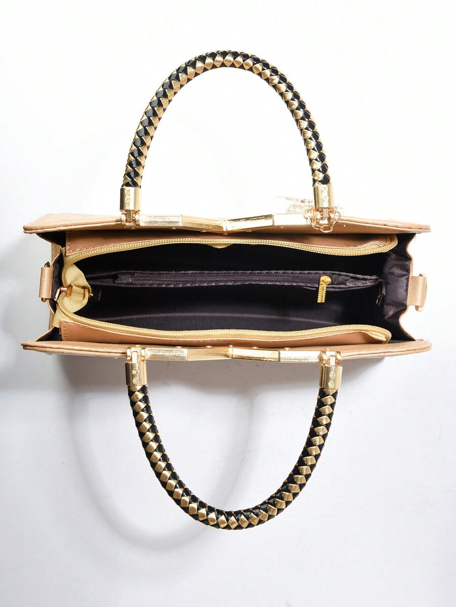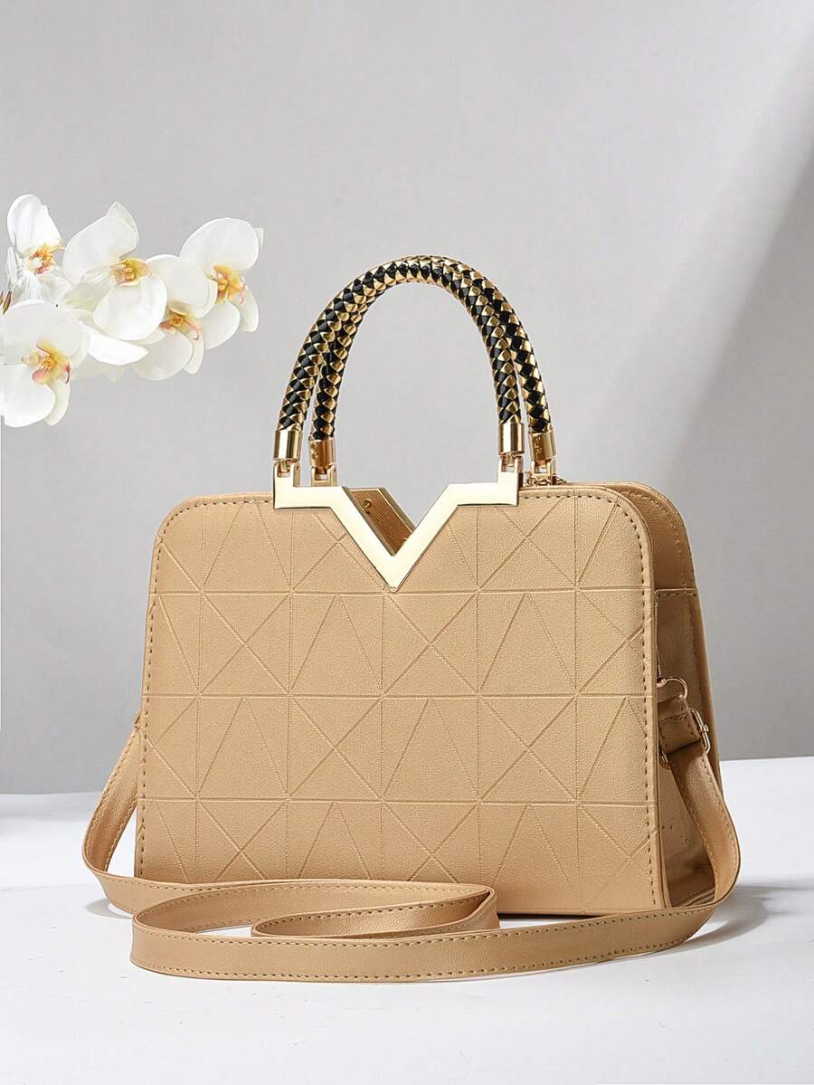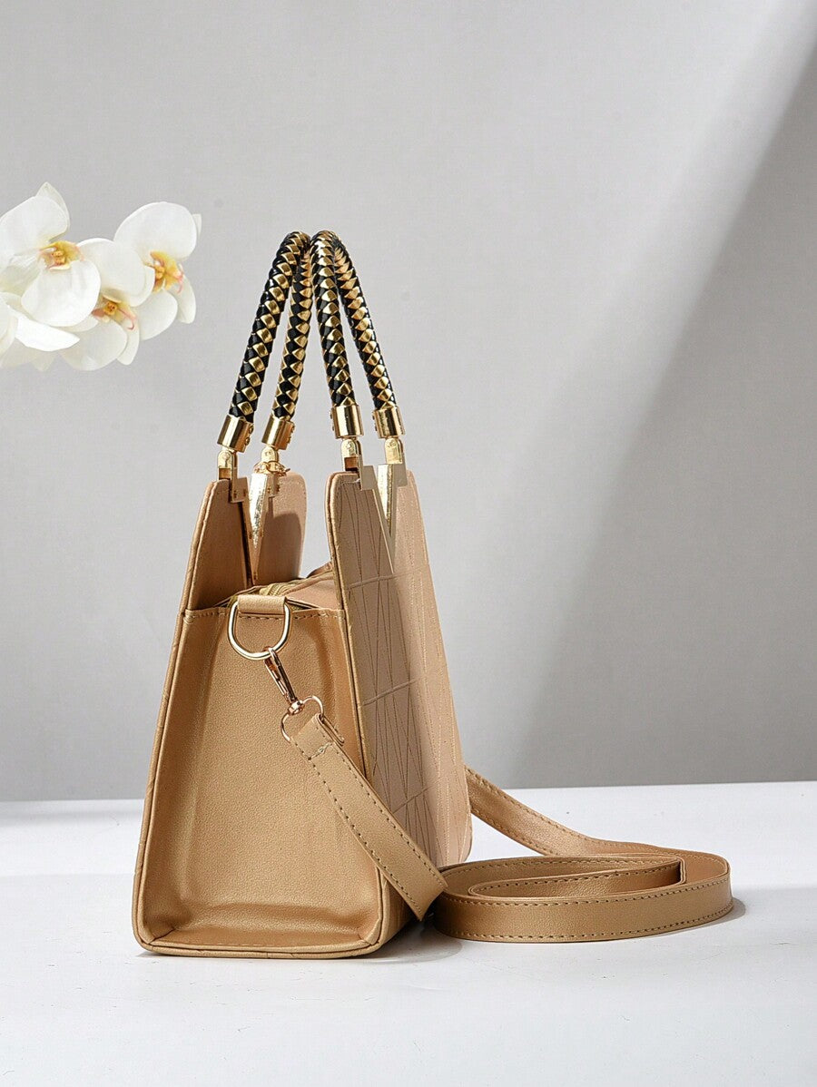 This elegant medium-sized square bag combines a textured beige PU leather exterior with a versatile double-handle strap design, allowing it to be carried by hand or worn crossbody. Its multi-compartment interior keeps essentials organized, making it ideal for office, work, or business settings. The bag’s no-closure style offers easy access while maintaining a casual yet professional look, perfect as a practical gift for mothers or anyone seeking functional elegance in daily use.