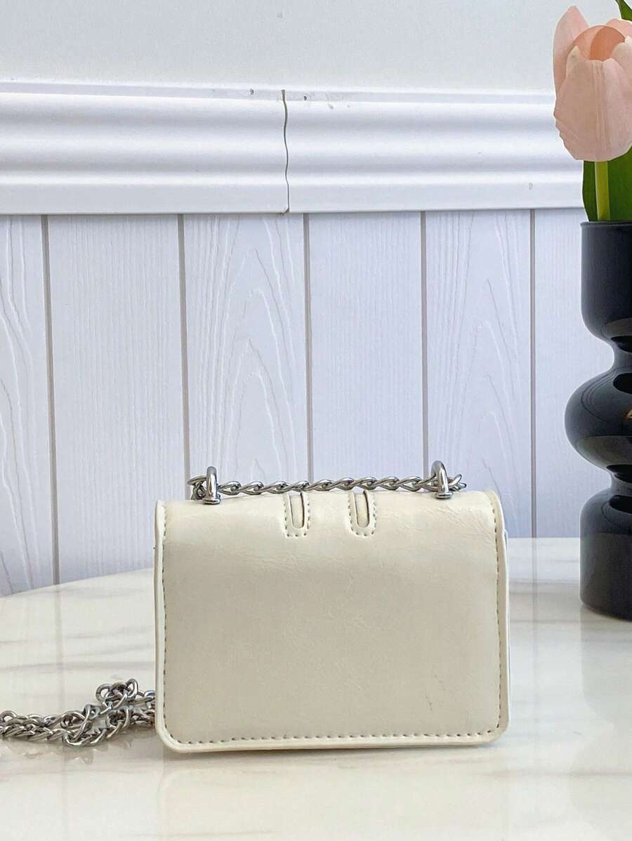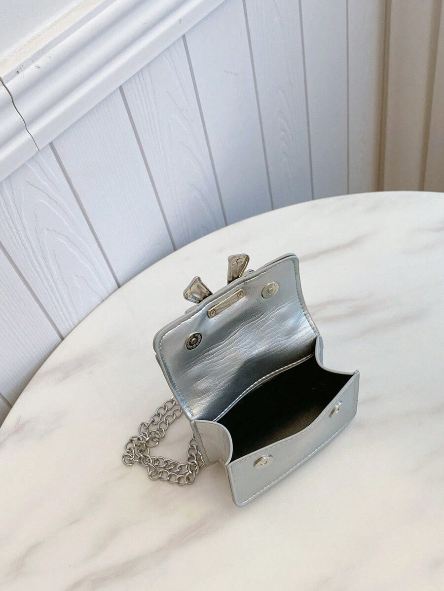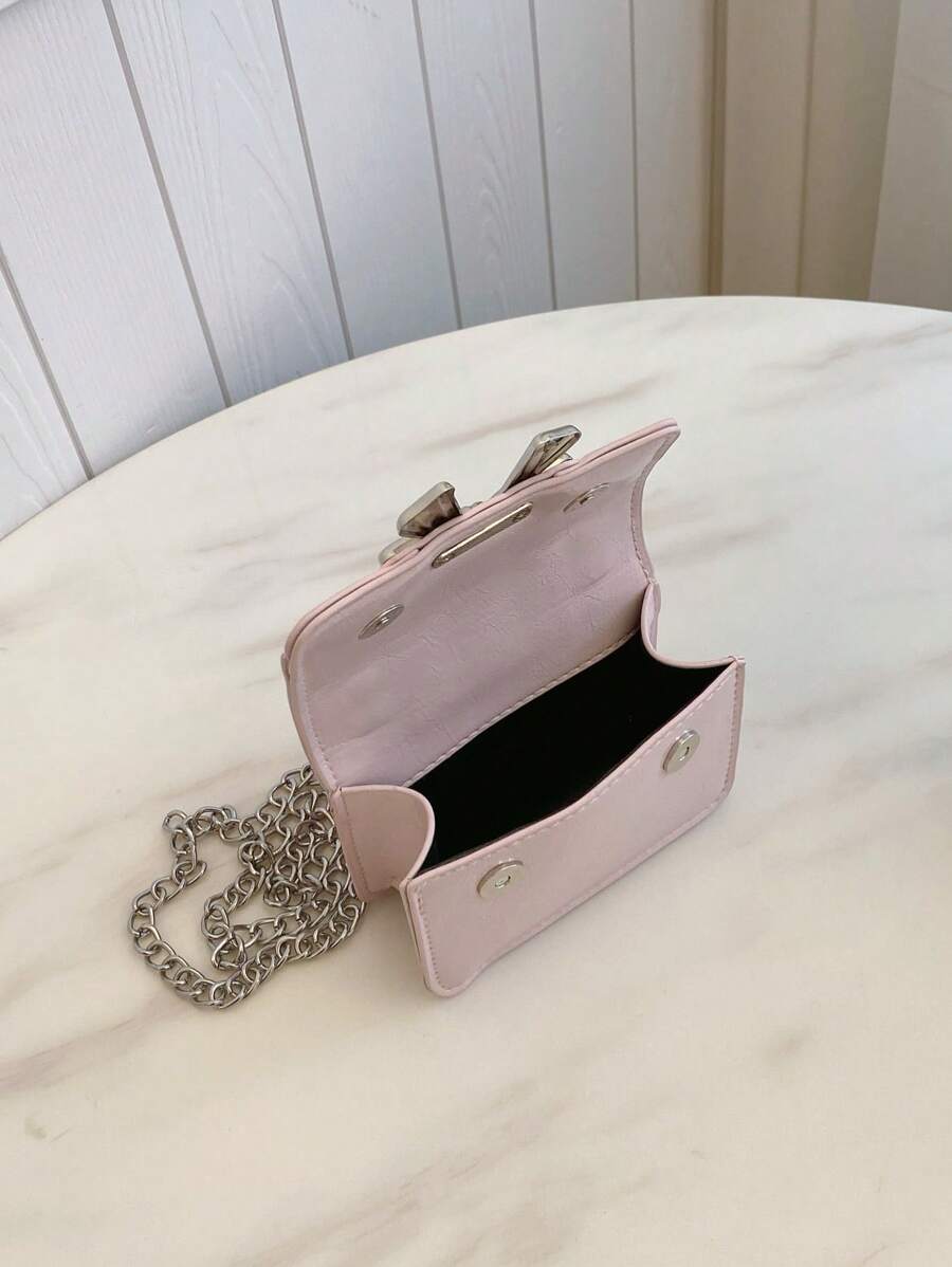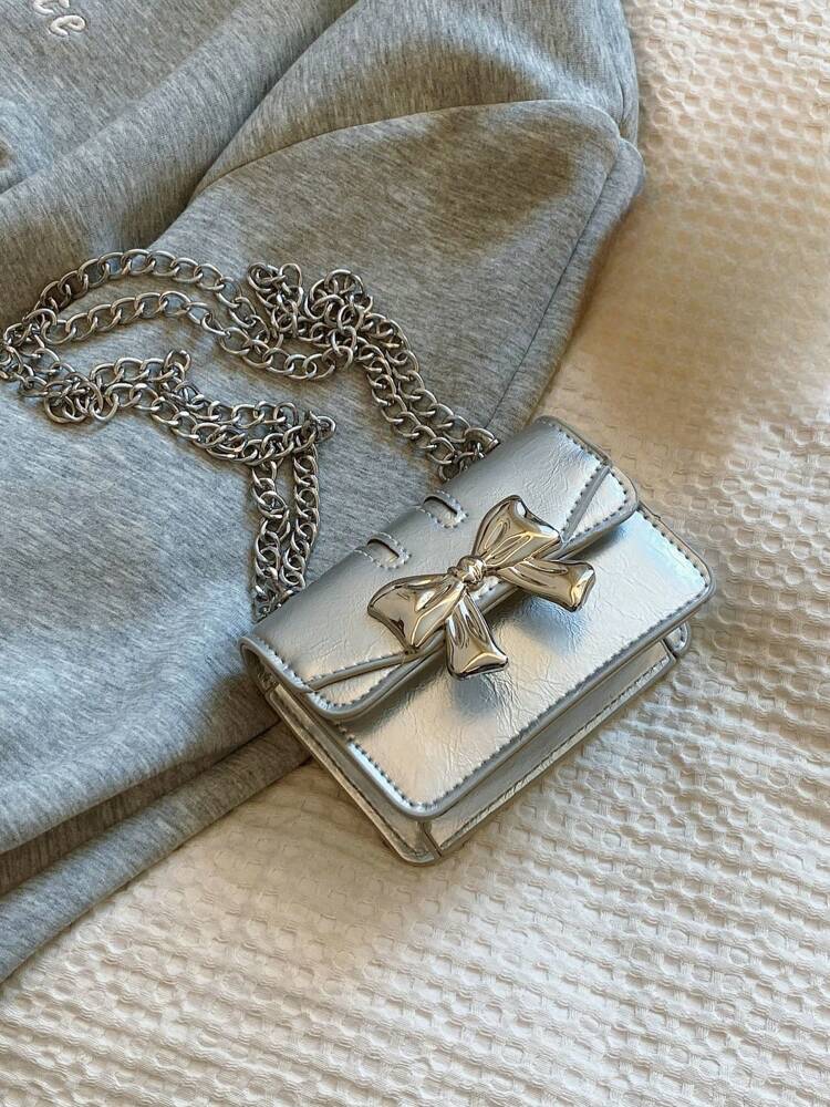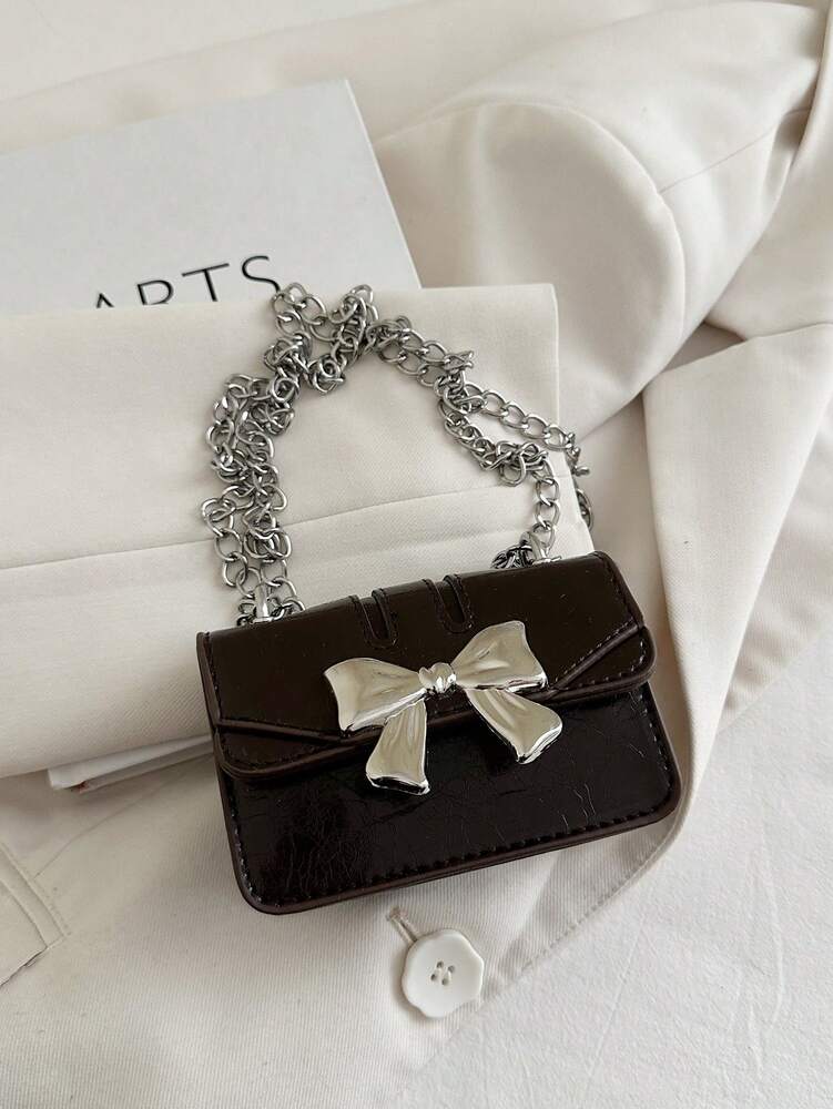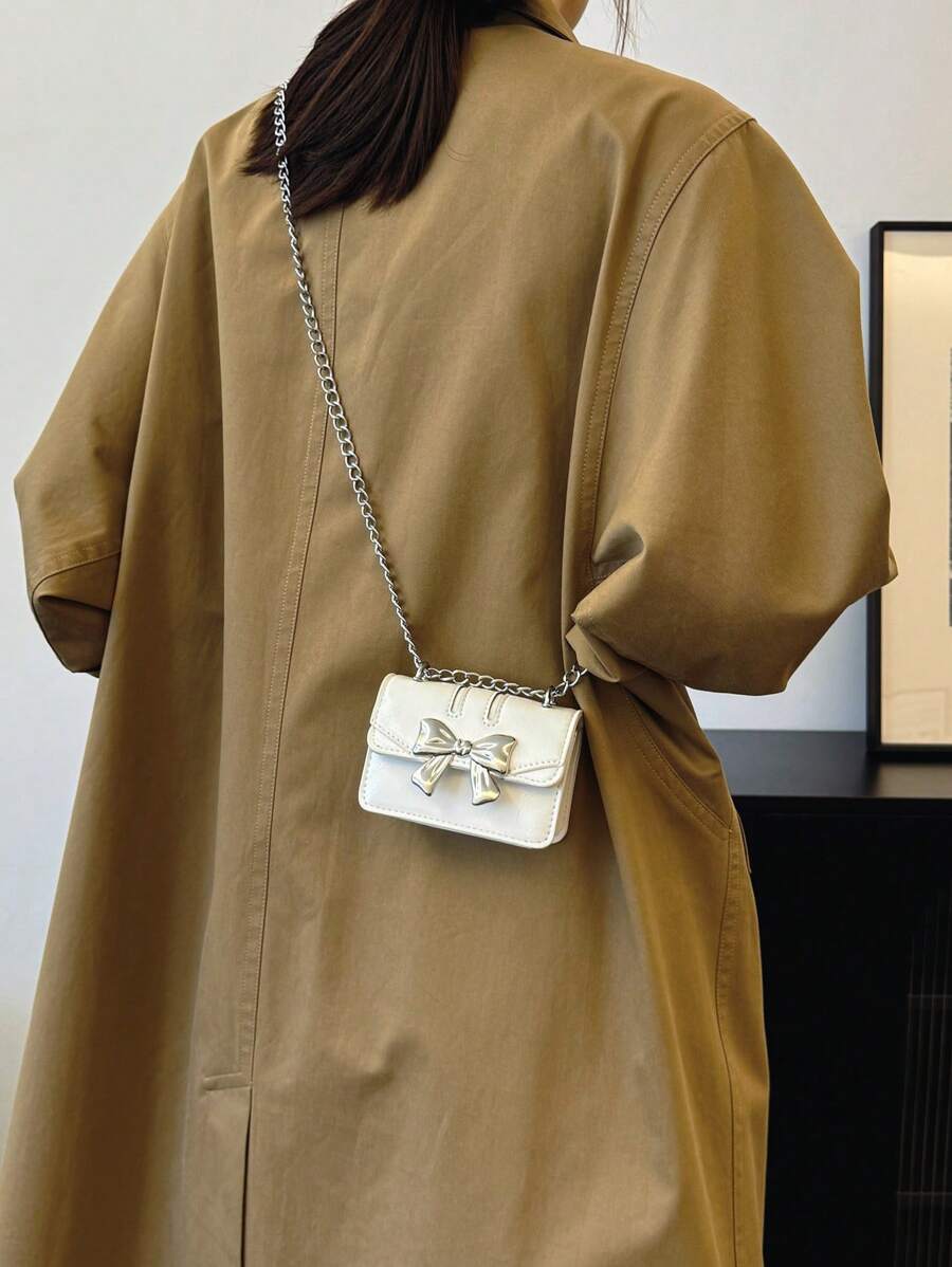 Fashionable Mini Square Crossbody Bag with Bow Decoration and Double Chain, Ideal for Fall and Winter, Lightweight Daily Purse for Students and Women