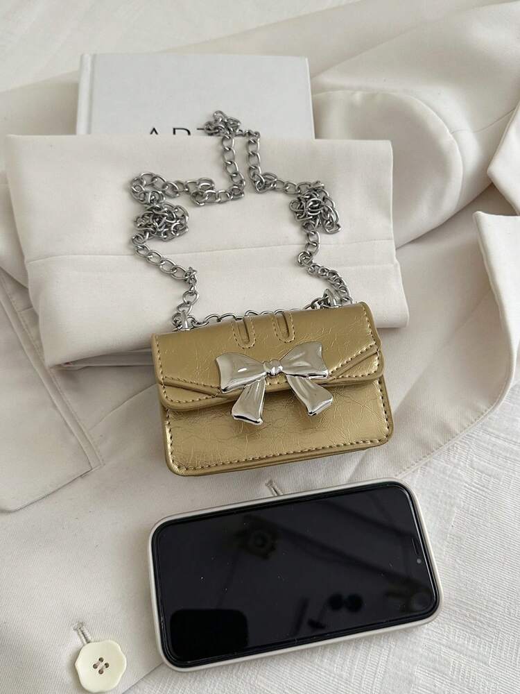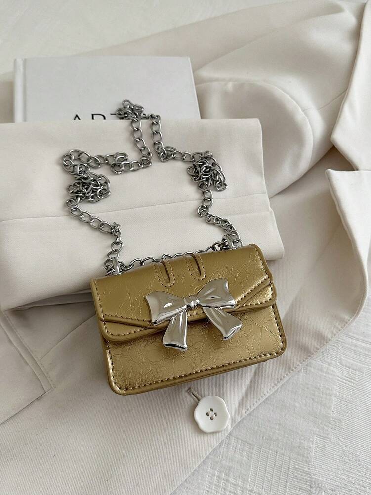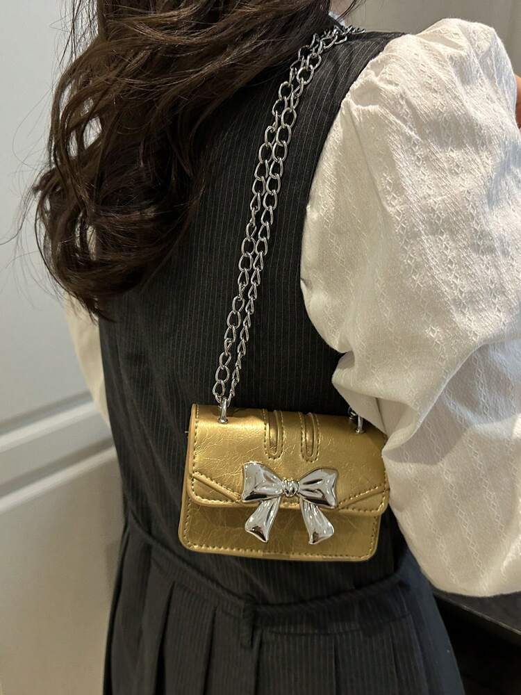This fashionable mini square crossbody bag combines a chic bow decoration with a double chain strap, perfect for elevating your office or everyday look. Crafted from lightweight PU leather with a durable polyurethane coating, it offers both style and practicality. The flap closure ensures secure storage, while the gold finish adds a sophisticated touch. Ideal for fall and winter, this compact bag suits students and women seeking a trendy yet functional accessory.