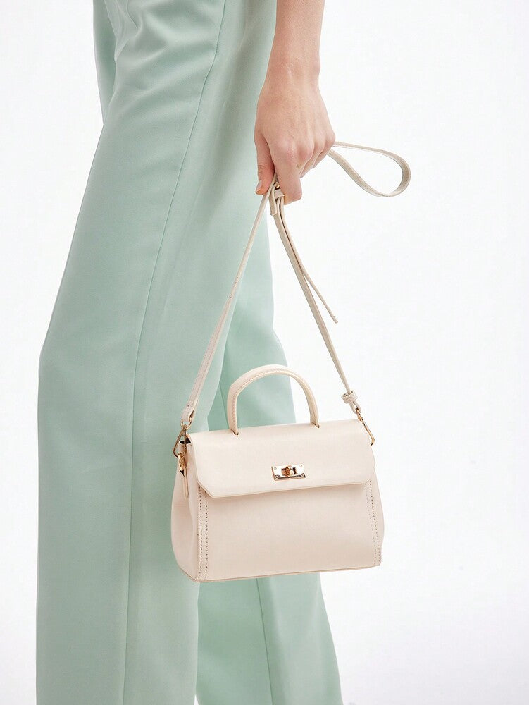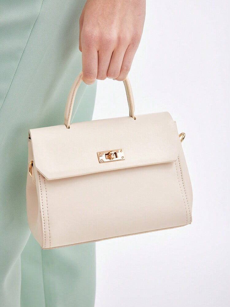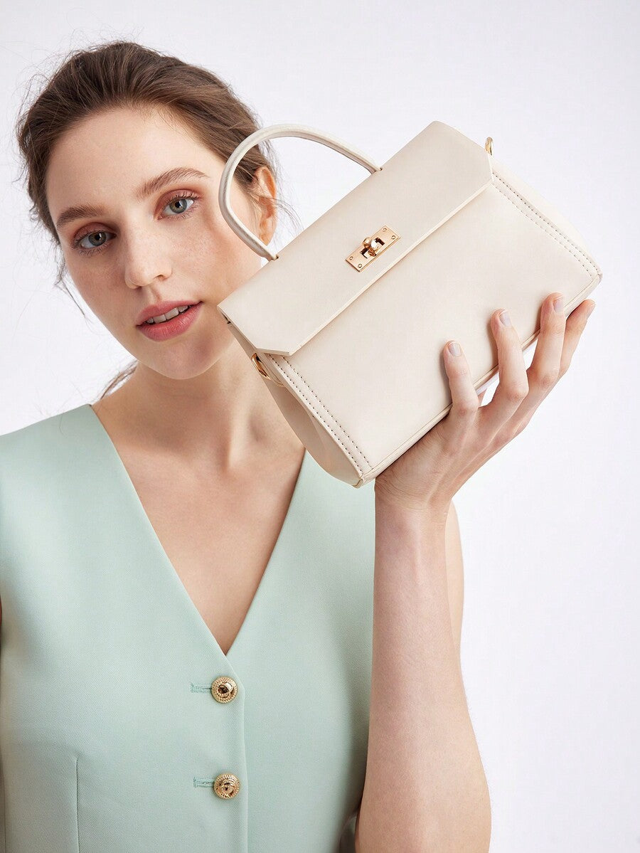 This minimalist premium handbag combines a sleek, structured design with a lightweight build, ideal for women seeking both style and function. Crafted from durable PU leather in a versatile beige shade, it features a fashionable spiked detail and contrasting binding for subtle flair. The medium-sized square shape with a top handle and flap closure offers practicality for daily commutes and business casual settings, blending elegance with casual sophistication effortlessly.