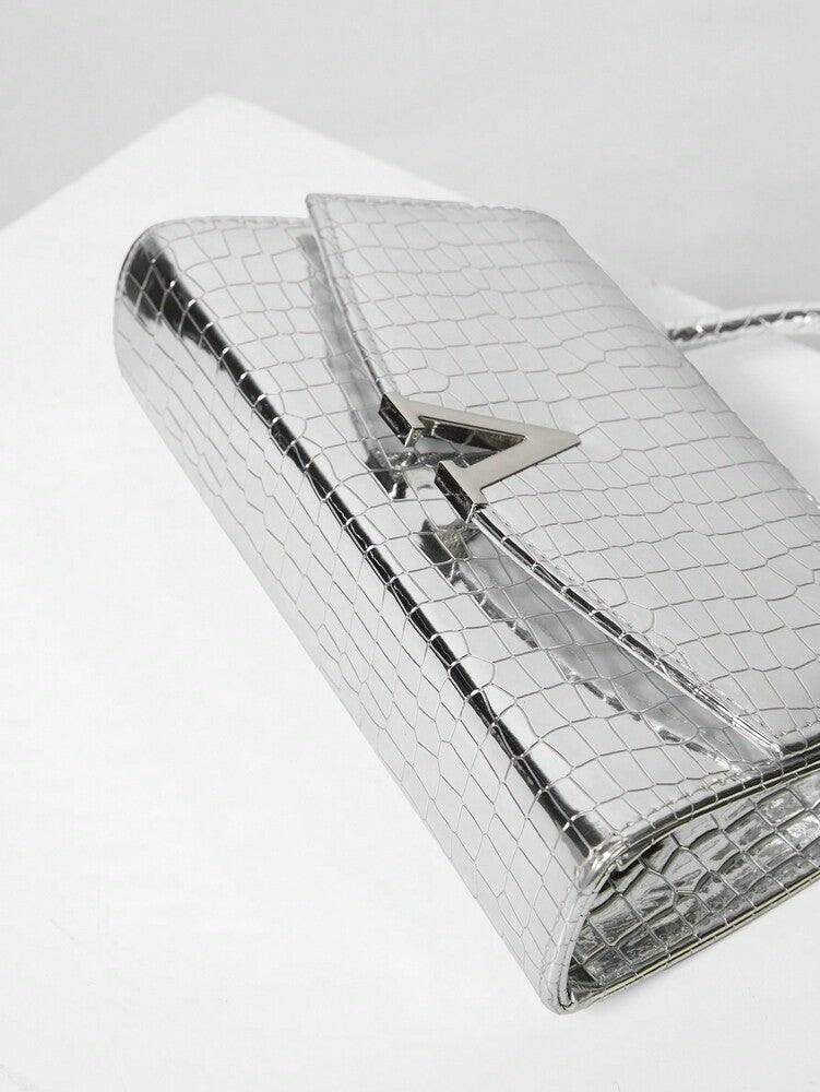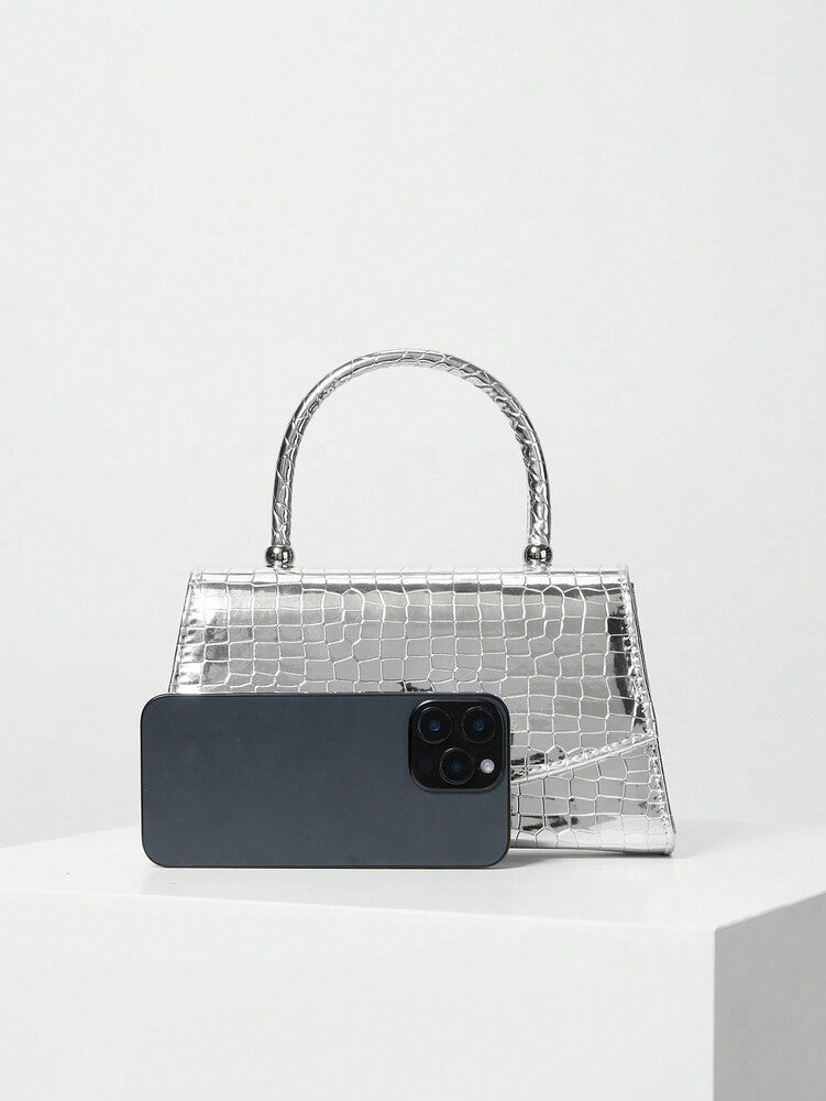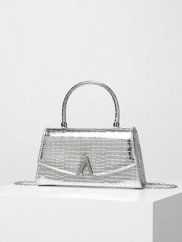 This elegant mini satchel combines silver patent PU leather with shimmering glitter and rhinestone accents for a sophisticated party look. Its medium, square shape offers enough space for essentials, while the chain strap and flap closure ensure secure and stylish wear. Ideal for weddings, proms, or formal events, this bag blends a colorful textured pattern with a glamorous finish, making it a standout accessory that complements evening attire perfectly. Crafted from durable polyester, it promises both fashion and longevity.