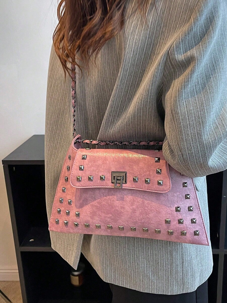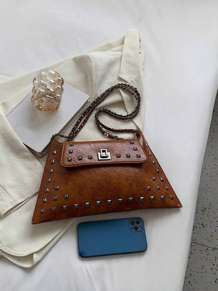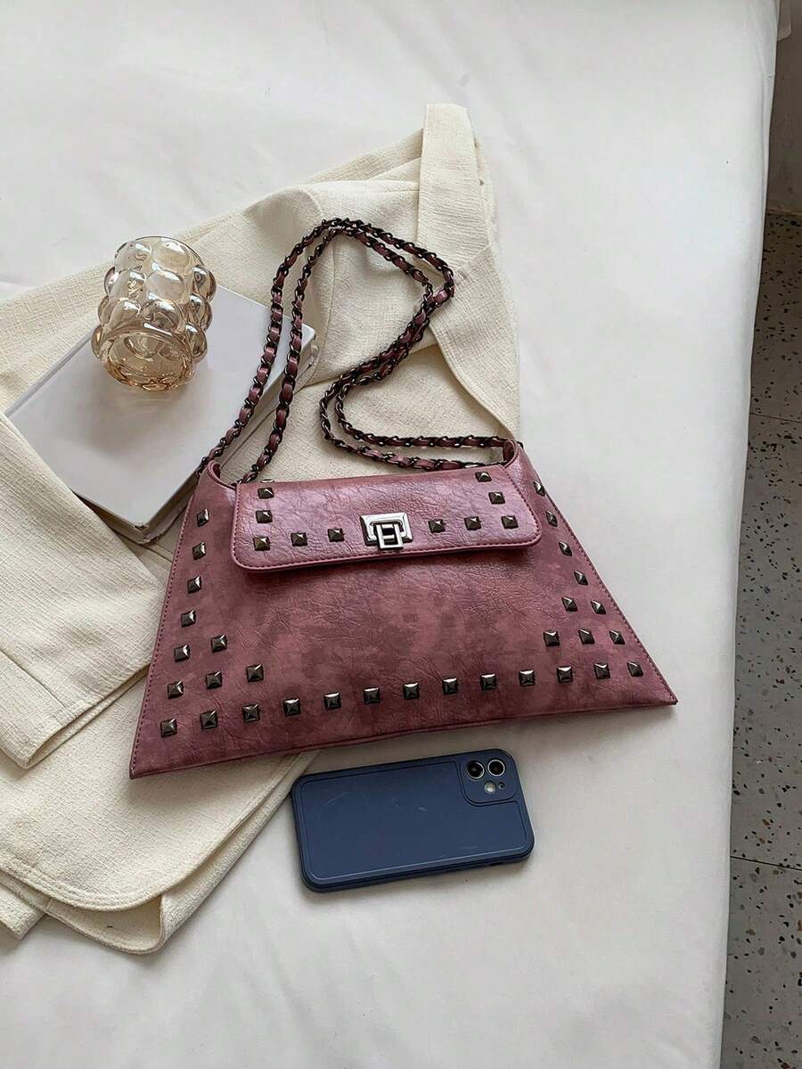 Solid Colour PU Leather Crossbody Bag with Twist Lock, Sleek and Fashionable Shoulder Bag for Office, School, Work or Daily Shopping