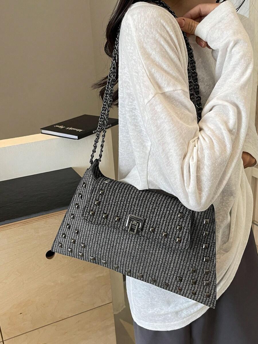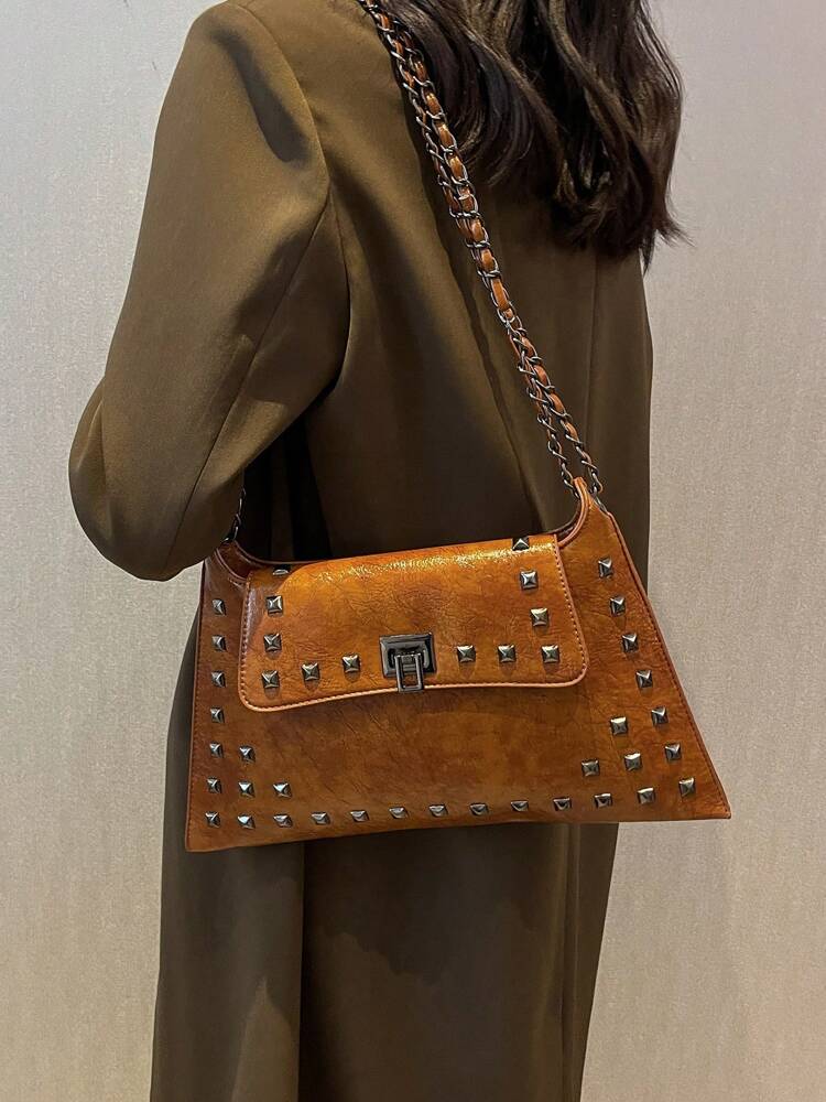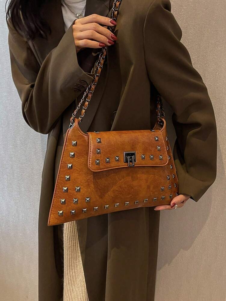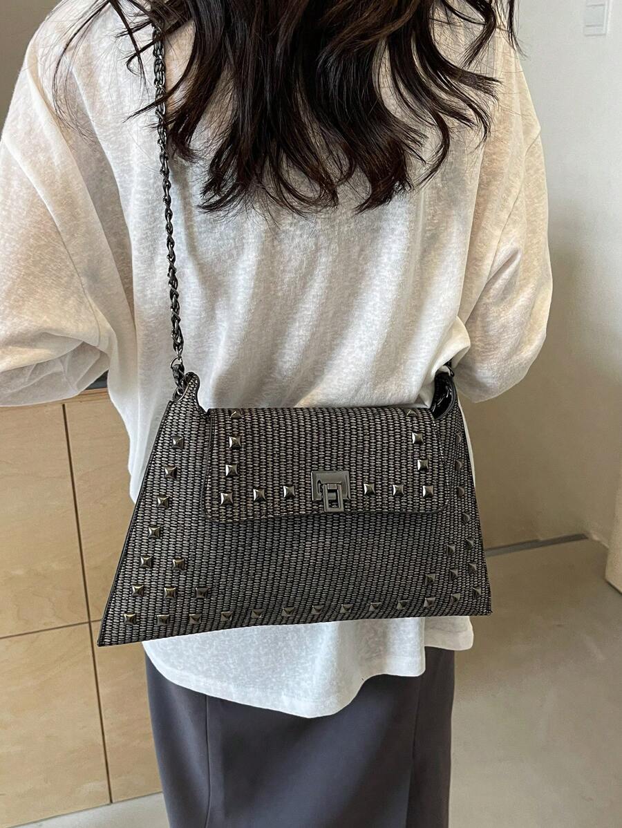 Solid Colour PU Leather Crossbody Bag with Twist Lock, Sleek and Fashionable Shoulder Bag for Office, School, Work or Daily Shopping