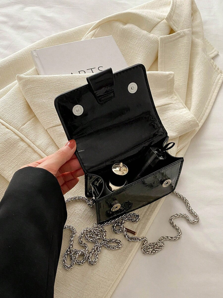 Stylish Mini Square Crossbody Bag with Bow Hardware, Flap Closure and Chain Strap, Perfect for Fall/Winter, Lightweight Bag for Girls and Ladies