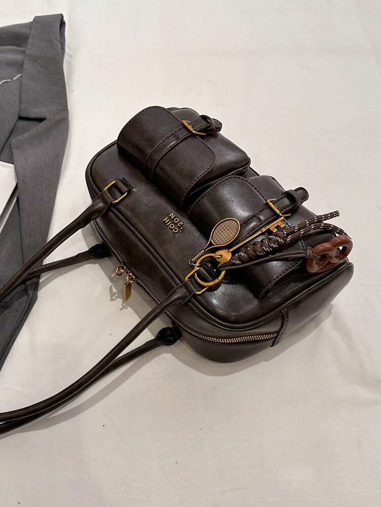 Trendy Pillow Shoulder Bag with Bread Knot Pendant and Multi Pockets, Retro Minimalist Handbag for Women, Perfect for Daily Use and Shopping